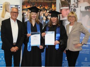 Strahlende Gesichter und tolle Stimmung auf der Graduiertenfeier der Hochschule Aalen: 20 Bachelor- und Masterabsolventinnen und -absolventen freuten sich am 15. November über den erfolgreichen Abschluss ihres Augenoptik-/Optometrie-Studiums. In Rahmen der Graduiertenfeier wurde auch der 18. Karl Amon Optometry Award verliehen. In diesem Jahr ging der mit insgesamt 2000 Euro dotierte Preis an Natascha Lanz und Xenia Bieche.