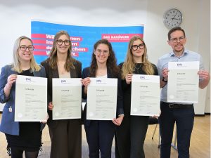 Bild HWK Düsseldorf/Wilfried Meyer: vlnr: Leonie Vanessa Leisch, Rike Hanna Middendorf, Miriam Anna Radlhammer, Henrike Leonie Leitl, Kay Steven Sailer