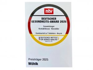 Verliehen wird der Award vom Deutschen Institut für Service-Qualität und dem Nachrichtensender ntv. Die Befragung ist unabhängig und bevölkerungsrepräsentativ. Der Award wird in insgesamt 68 Kategorien vergeben und zeigt auf, welche Anbieter aus dem Gesundheitssektor führend sind. In der Kategorie Kontaktlinsen-Hersteller erzielte Wöhlk in den Bereichen Preis-Leistungs-Verhältnis, Angebot, Kundenservice sowie Weiterempfehlung insgesamt 83,8 von 100 möglichen Punkten – und damit den 1. Platz. Wöhlk Contactlinsen gewinnt den Deutschen Gesundheits-Award 2025 zum dritten Mal in Folge.